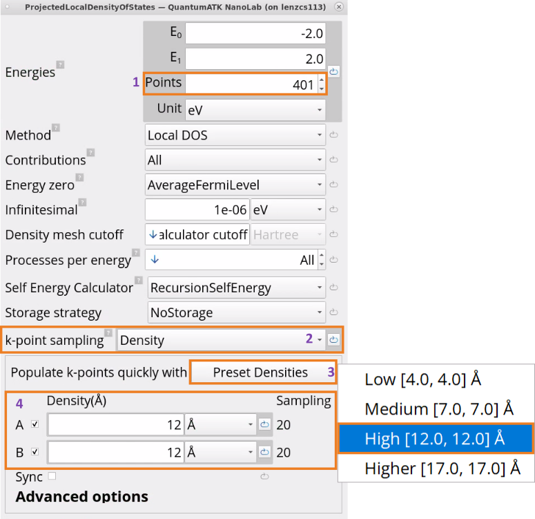 Edit the ProjectedLocalDensityOfStates block parameters: