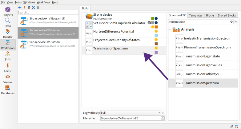 Change the Workflow name and Filename as needed (e.g., Si-p-n-device-0V-Bassani.hdf5)