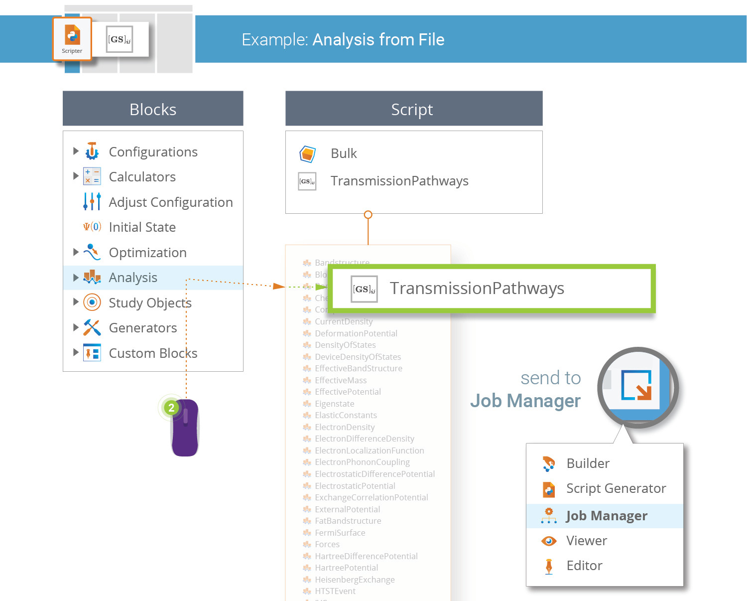 Additional analysis of the transmission eigenstates may be manually added to the IV Characteristics block. To do this, send the script to the