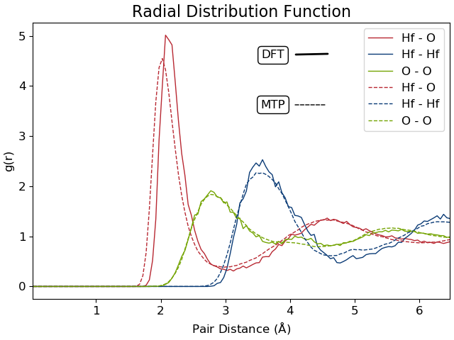 As can be seen from the images above, there is a good agreement between the MTP generated trajectory and the DFT trajectory.