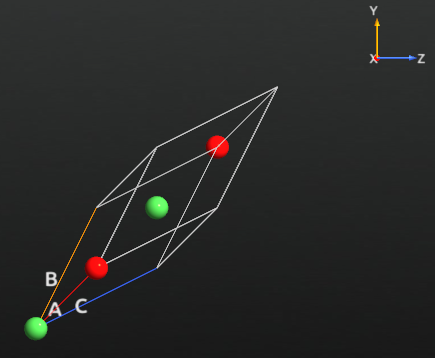 The rhombohedral unit cell vectors are given as \(( 1,\frac{1}{2},\frac{1}{2}) a\), where \(a\) is the fcc lattice constant. The length of the rhombohedral unit cell vectors are therefore given by \(\sqrt{\frac{3}{2}} a\), and are in accordance with the experimental fcc lattice constant of 4.17 Å [3].